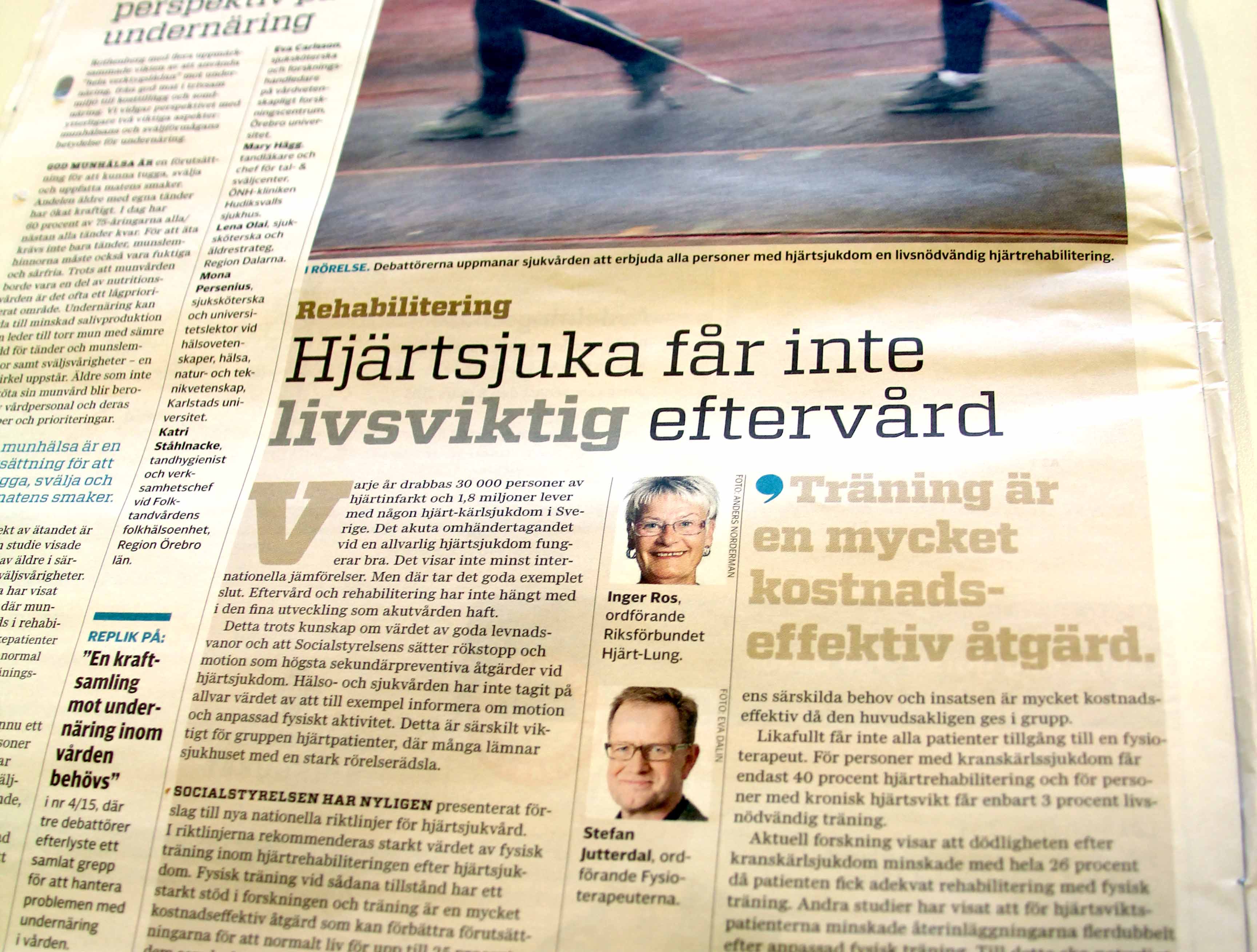 HjärtLungs förbundsordförande Inger Ros i SvD tillsammans med bland andra Läkarförbundet och Ung...