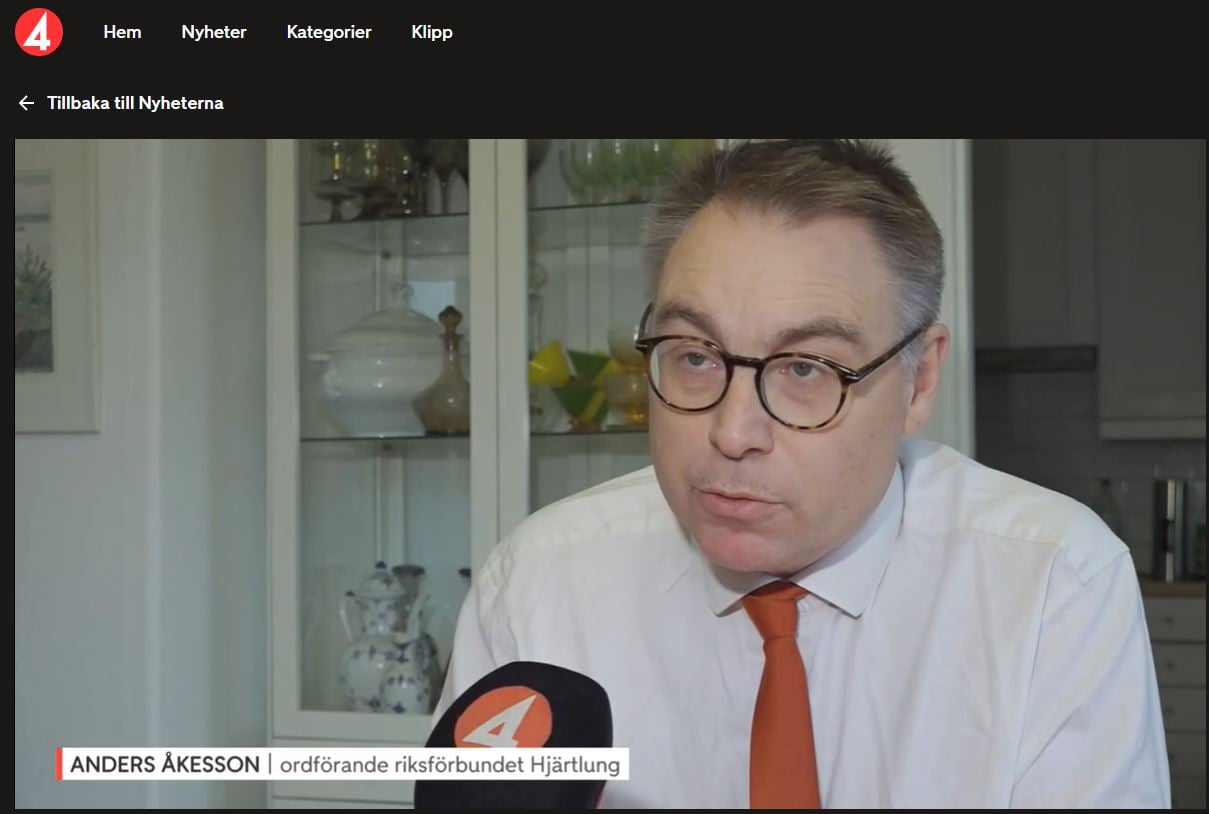 I TV4 Nyheterna kommenterar Riksförbundet HjärtLungs ordförande Anders Åkesson det faktum att ett...