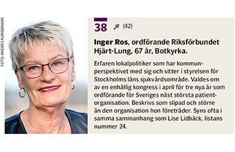 Riksförbundet HjärtLungs ordförande Inger Ros tar plats nummer 36 på tidningen Dagens Medicins...