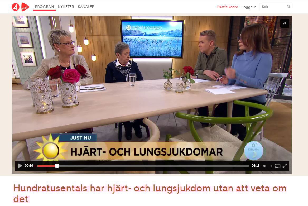 Inslag från Tv4 Nyhetsmorgon med HjärtLungs ordförande Inger Ros och med May-Britt Larsson, som h...
