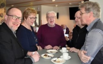 Efter välkomstbubbel i vårsolen var det dags att slå sig ner för middag. Men Dick Carlsson hann...