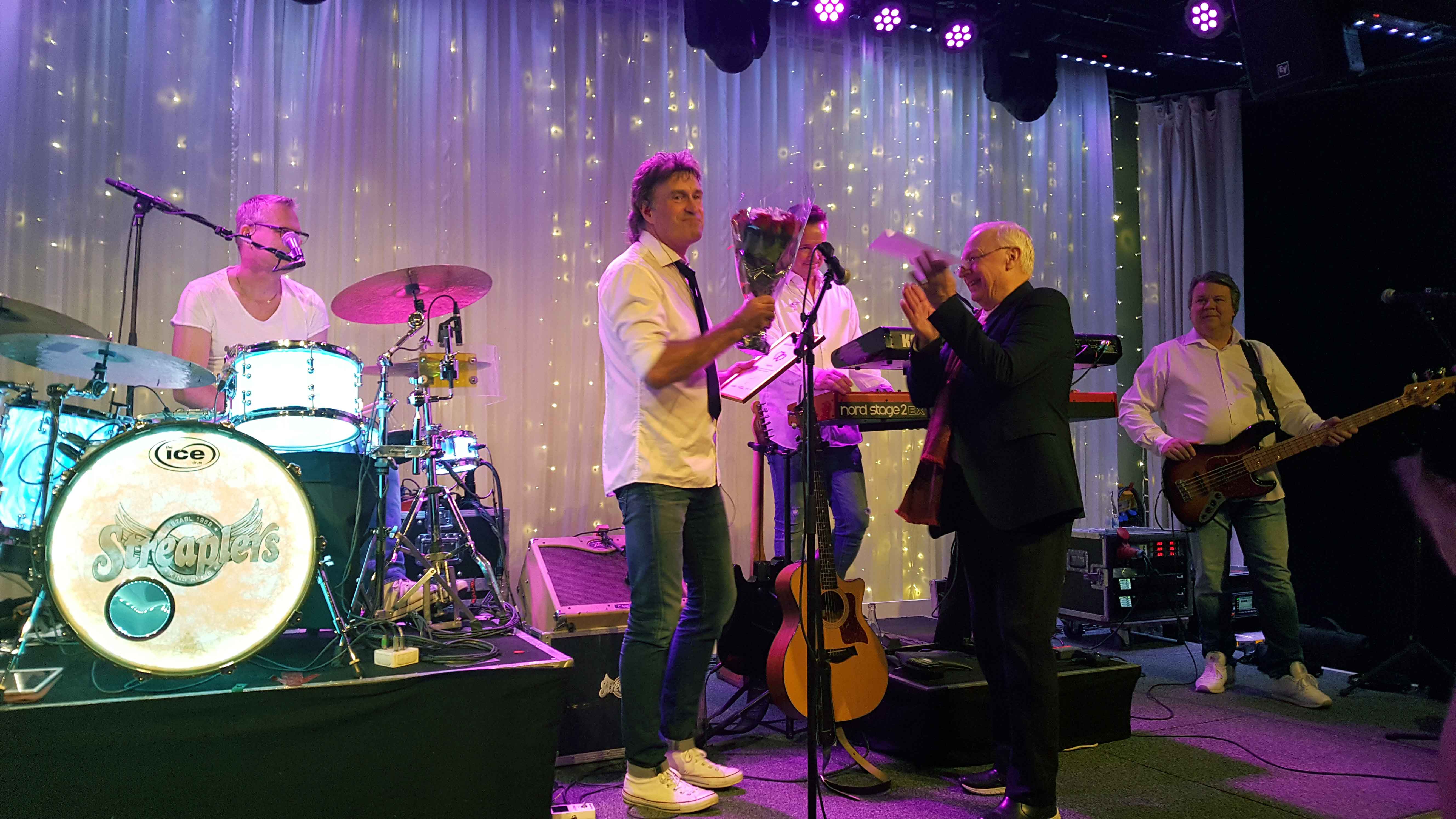 Peter Helsing, ordförande i HjärtLung Sundsvall, delade ut hederspriset till ett överraskat dansband under en spelning på kasinot i Sundsvall den 13 februari.