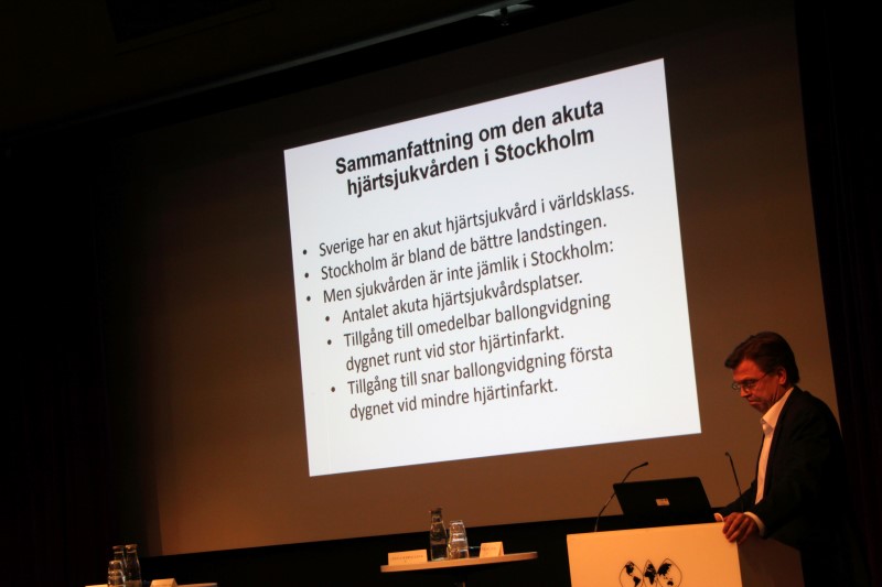 Tomas Jernberg, överläkare vid Karolinska sjukhuset i Huddinge presenterade fakta om skillnaden i tillgång till hjärtsjukvård i norra respektive de södra delarna av Stockholm.