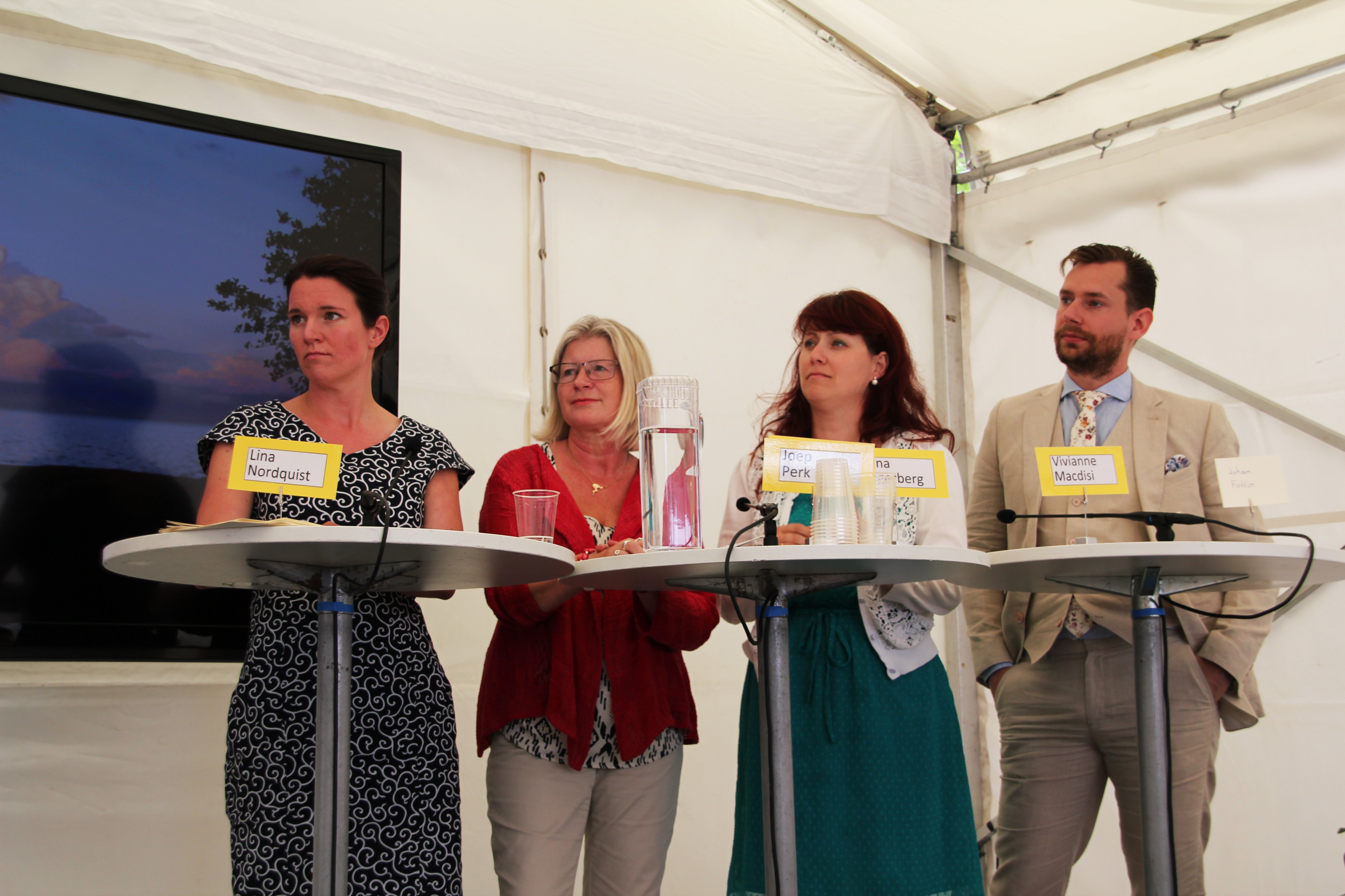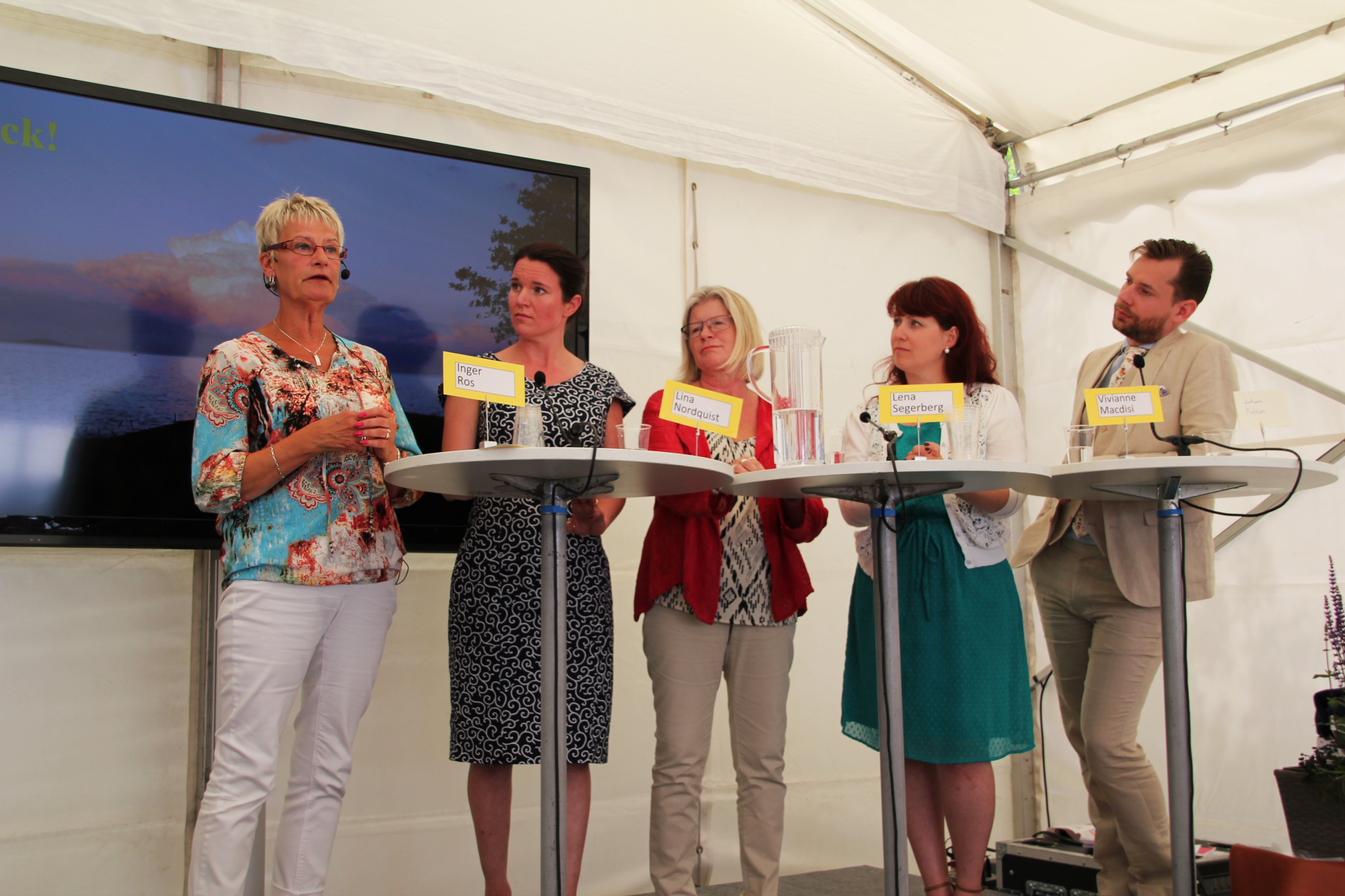 Hela panelen. Från vänster; Inger Ros, Lina Nordquist (L), Lena Segerberg (S), Vivianne Macdisi (S) och Johan Folin (M).