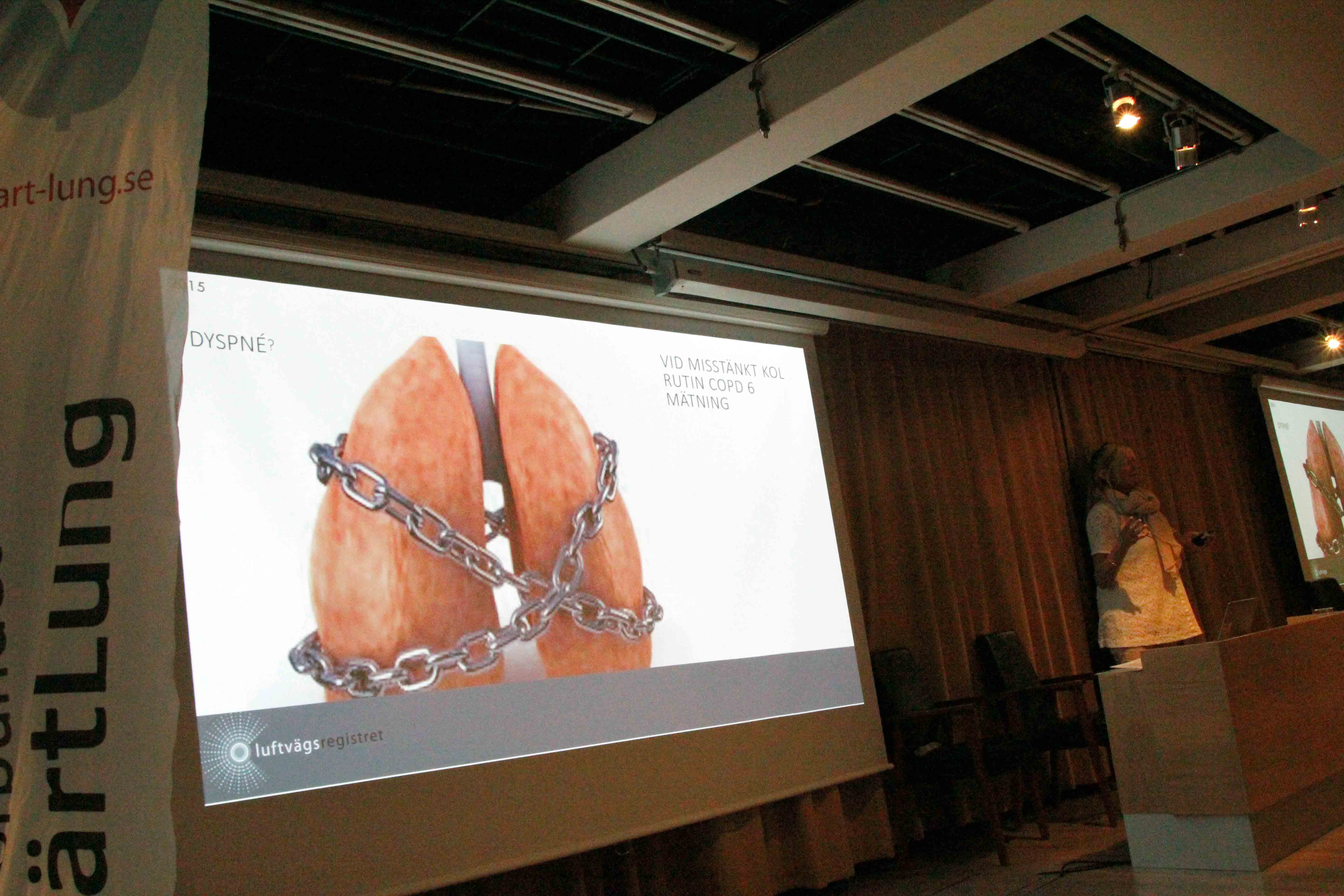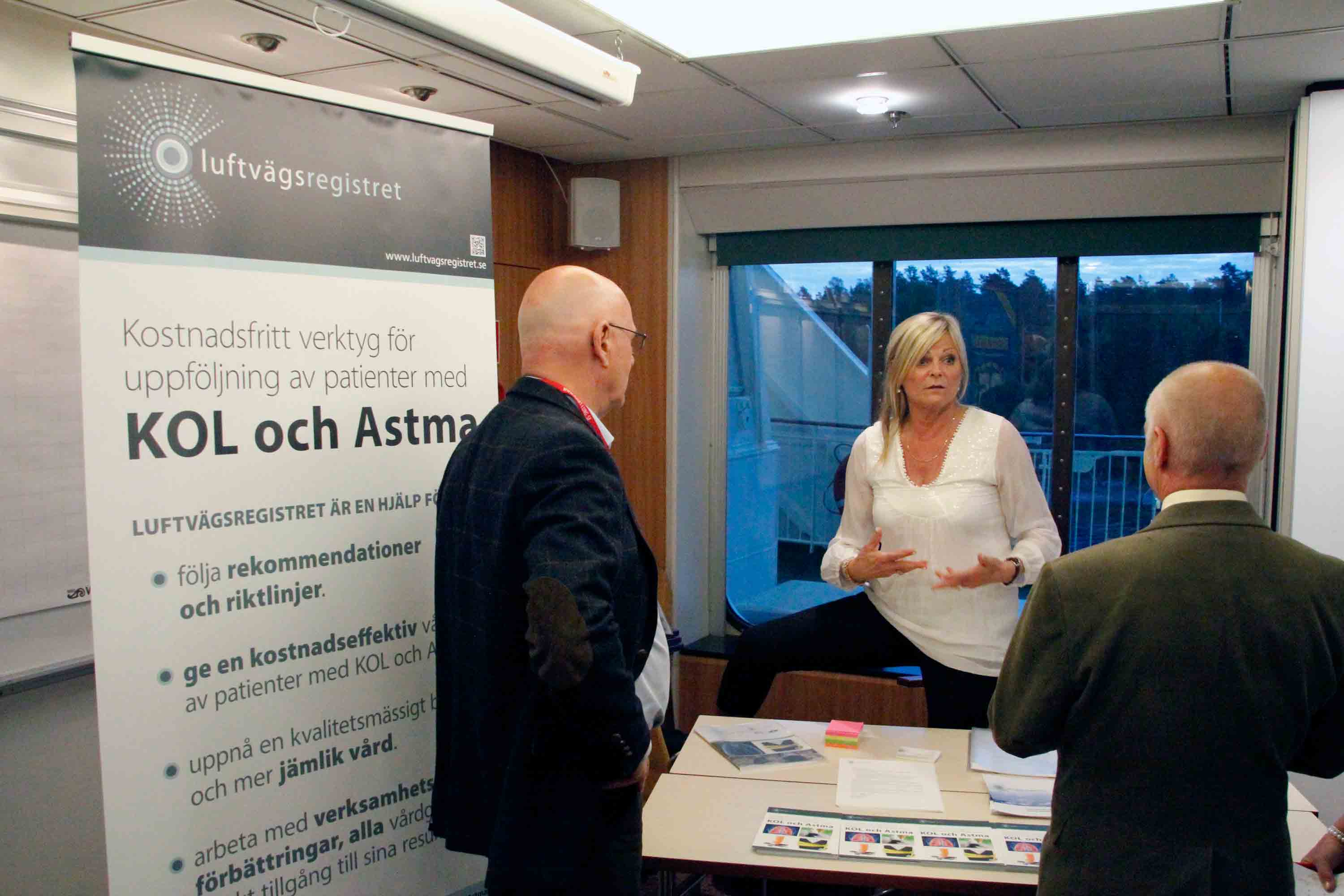 Luftvägsregistrets Kerstin Fjällman berättar om KOL och arbetet med kvalitetsregistret. Här med Förbundsstyrelsens Johnny Jakobsson och Skånes länsordförande Janeric Sundberg.