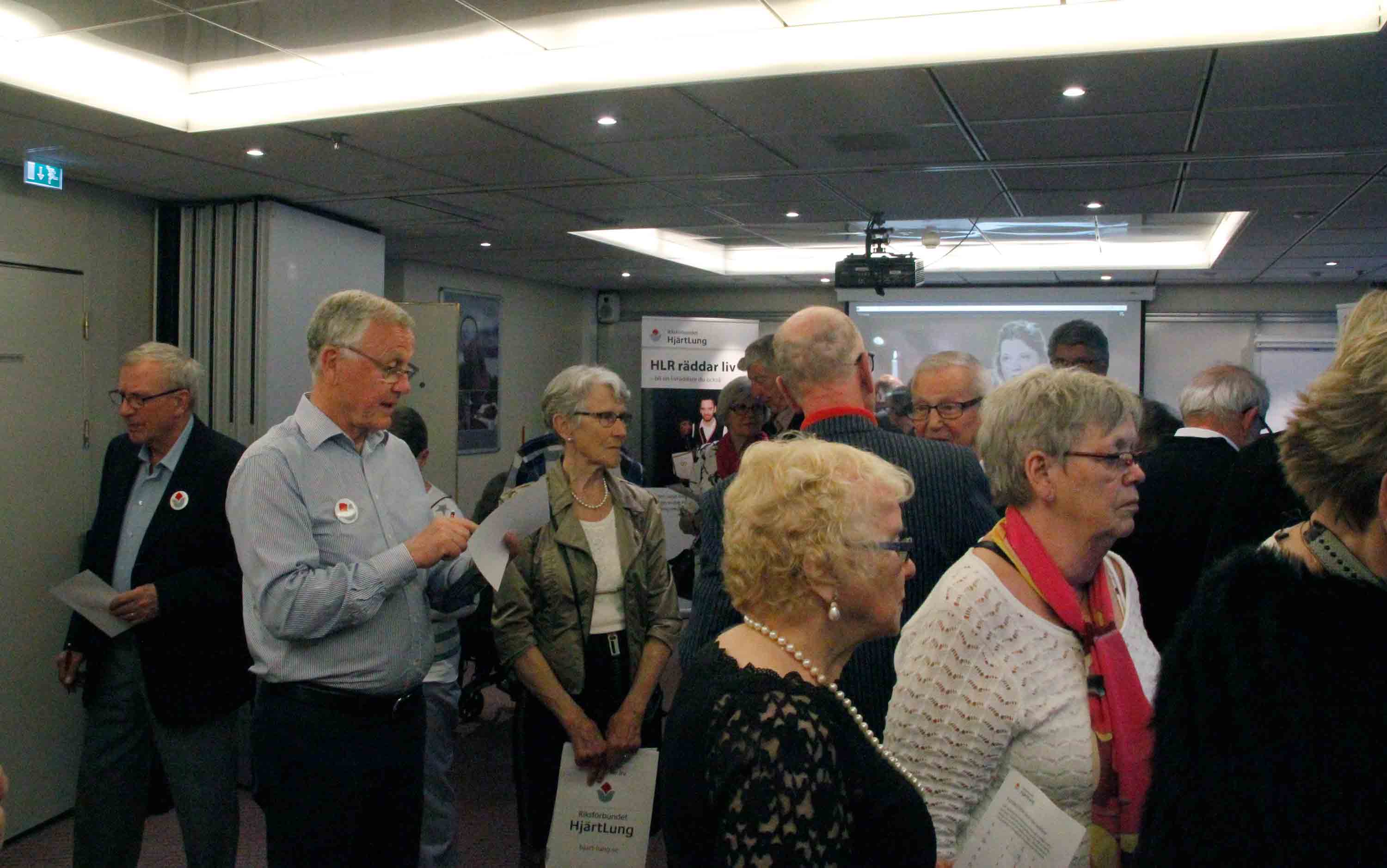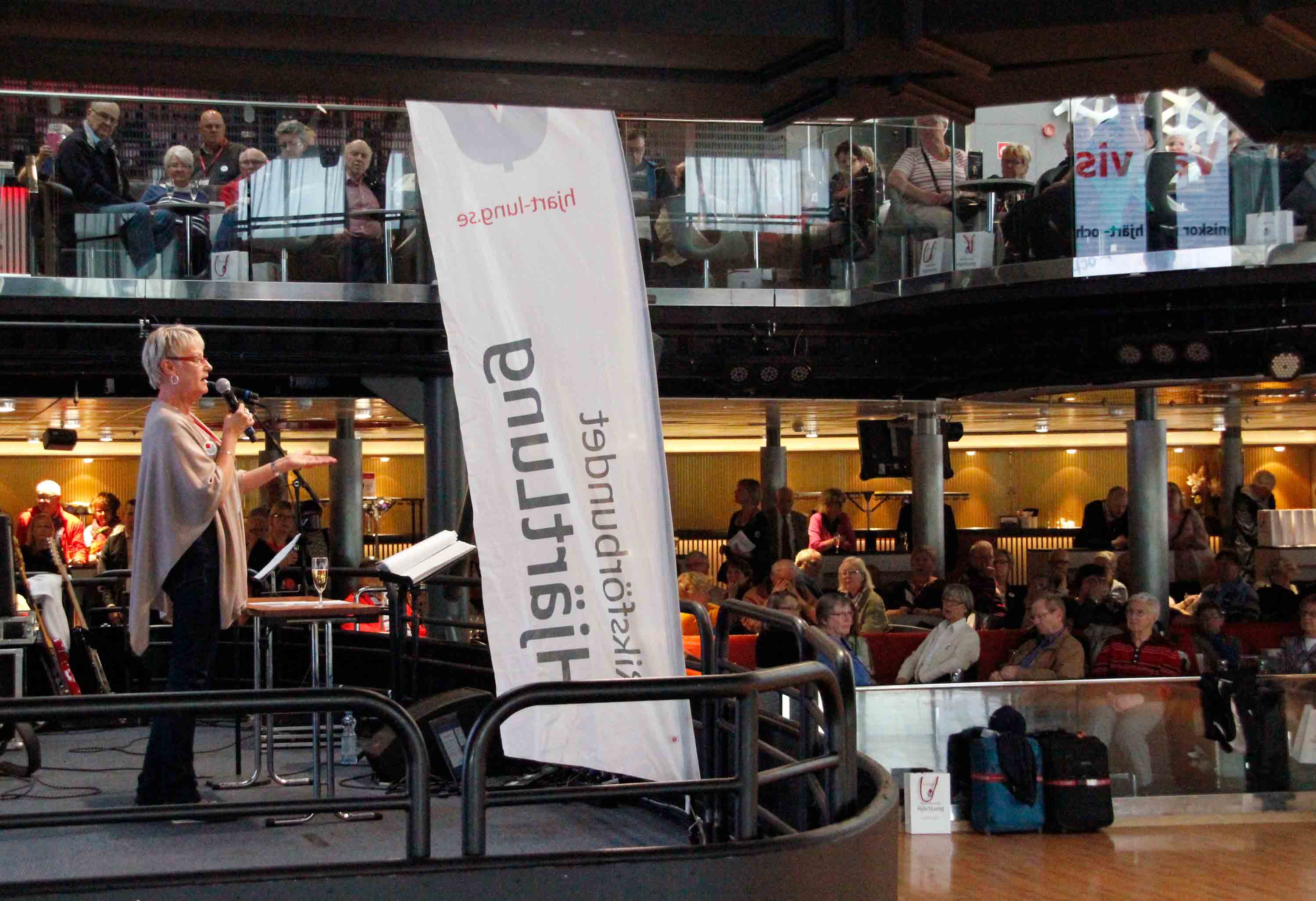 Väl ombord samlades alla på Etage för välkomstdrink, goodie-bag och tal av förbundsordförande Inger Ros. Inger Ros talade om hur stolt hon är över att leda ett förbund som sätter hjärt- och lungsjukas och deras anhörigas frågor på agendan och hur föreningarnas alla motionsaktiviteter ger ett oumbärligt stöd för hjärt-lungsjuka.