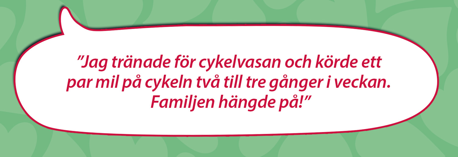 – Jag började cykla mycket och tog alltid cykeln till jobbet. Jag tränade för cykelvasan och körde ett par mil på cykeln två till tre gånger i veckan. Familjen hängde på! Jag hade också en period när jag var stenhård med kosten. Min fru och jag lagade mycket grönsaker och drog ner på kött, potatis och pasta.