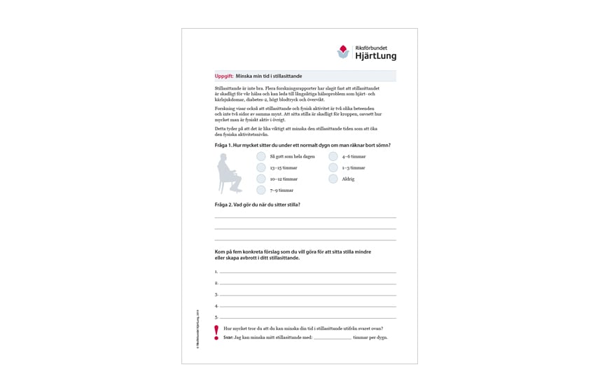 I Sverige sitter vi stilla ungefär 9 timmar om dagen. Det är inte bra, även om vi rör på oss och tränar regelbundet. Här finns tips på hur du kan minska ditt stillasittande.