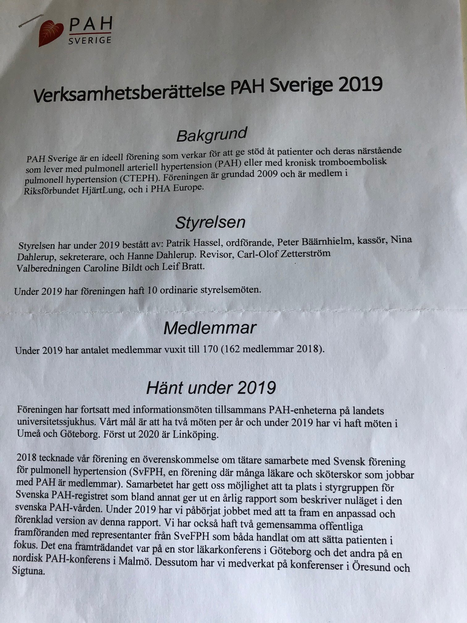 Verksamhetsberättelse för 2019 sid 1, sid 2