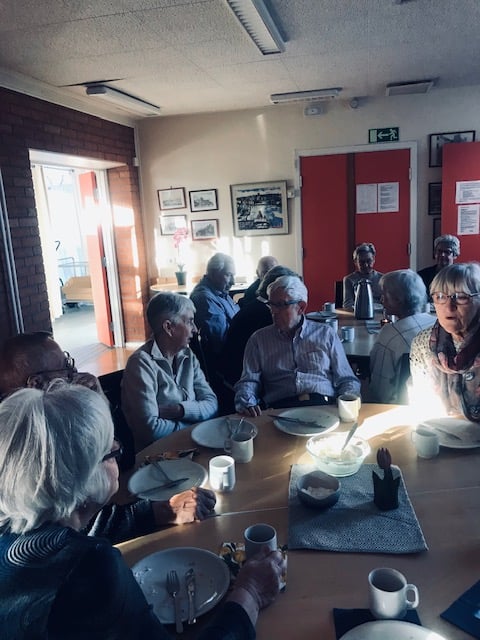 Bilder från en välbesökt caféträff 14 feb 2020