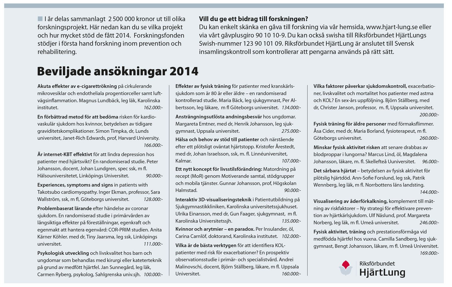 Beviljade forskningsansökningar 2014